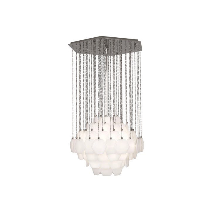 Оригинальный дизайн люстры Vienna, разработанный дизайнером Jonathan Adler в коллаборации с американским производителем элитного освещения Robert Abbey, искусно передает удивительную атмосферу легкости и воздушности. На тонких стальных цепочках разной длины цвета латуни, закреплены многоугольники из белого стекла, выдуваемого вручную, что делает ее настоящим произведением искусства, способным украсить интерьер любой гостиной.